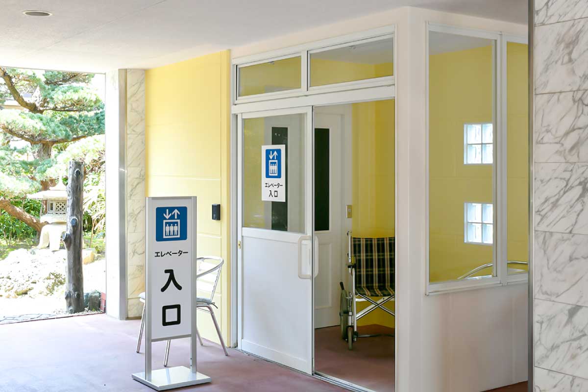駐車場エレベーター 車いすのままご利用ください。(備え付けの車いすもご利用いただけます)階段の上り下りが不安な方も、お気軽にご利用ください。